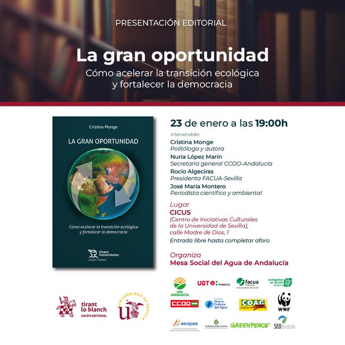 AEOPAS, asistió el pasado viernes 23 de enero, a la presentación del libro “La gran oportunidad. Cómo acelerar la transición ecológica y fortalecer la democracia”, escrito por la reconocida autora y experta en sostenibilidad Cristina Monge.