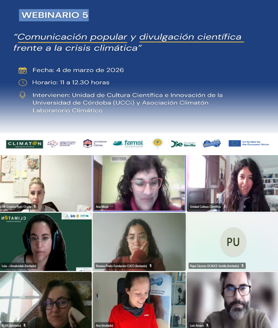 La sesión contó con la participación de la Unidad de Cultura Científica e Innovación de la Universidad de Córdoba (UCCI) y de la asociación Climatón Laboratorio Climático, dos entidades comprometidas con la divulgación del conocimiento científico y la sensibilización social en torno a la emergencia climática.