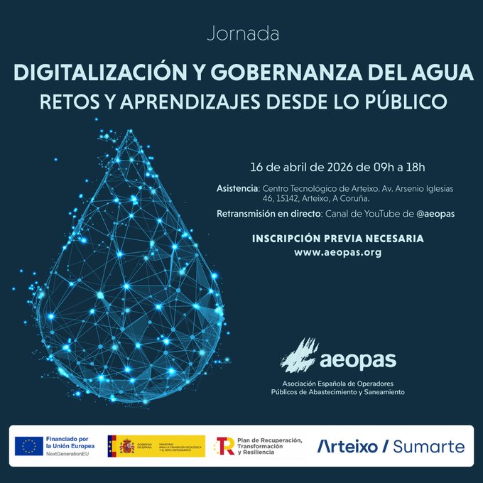 El evento, organizado por el Ayuntamiento de Arteixo y la Asociación Española de Operadores Públicos de Abastecimiento y Saneamiento (AEOPAS), reunirá a administraciones públicas, operadores de agua, universidades y especialistas en innovación para analizar cómo la digitalización está transformando la gestión del abastecimiento y el saneamiento. La asistencia será posible tanto de forma presencial como telemática.