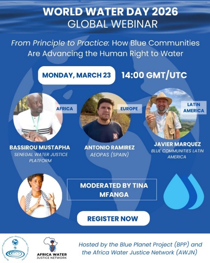 El 23 de marzo, con motivo del Día Mundial del Agua, la Asociación Española de Operadores Públicos de Abastecimiento y Saneamiento tomó parte en el seminario internacional “From Principle to Practice: How Blue Communities Are Advancing the Human Right to Water” (De los principios a la práctica: cómo las comunidades azules avanzan el Derecho Humano al Agua).