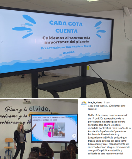 El pasado 16 de marzo, Aeopas estuvo presente con alumnado de 1.º de ESO, explicando la importancia del agua como bien común.