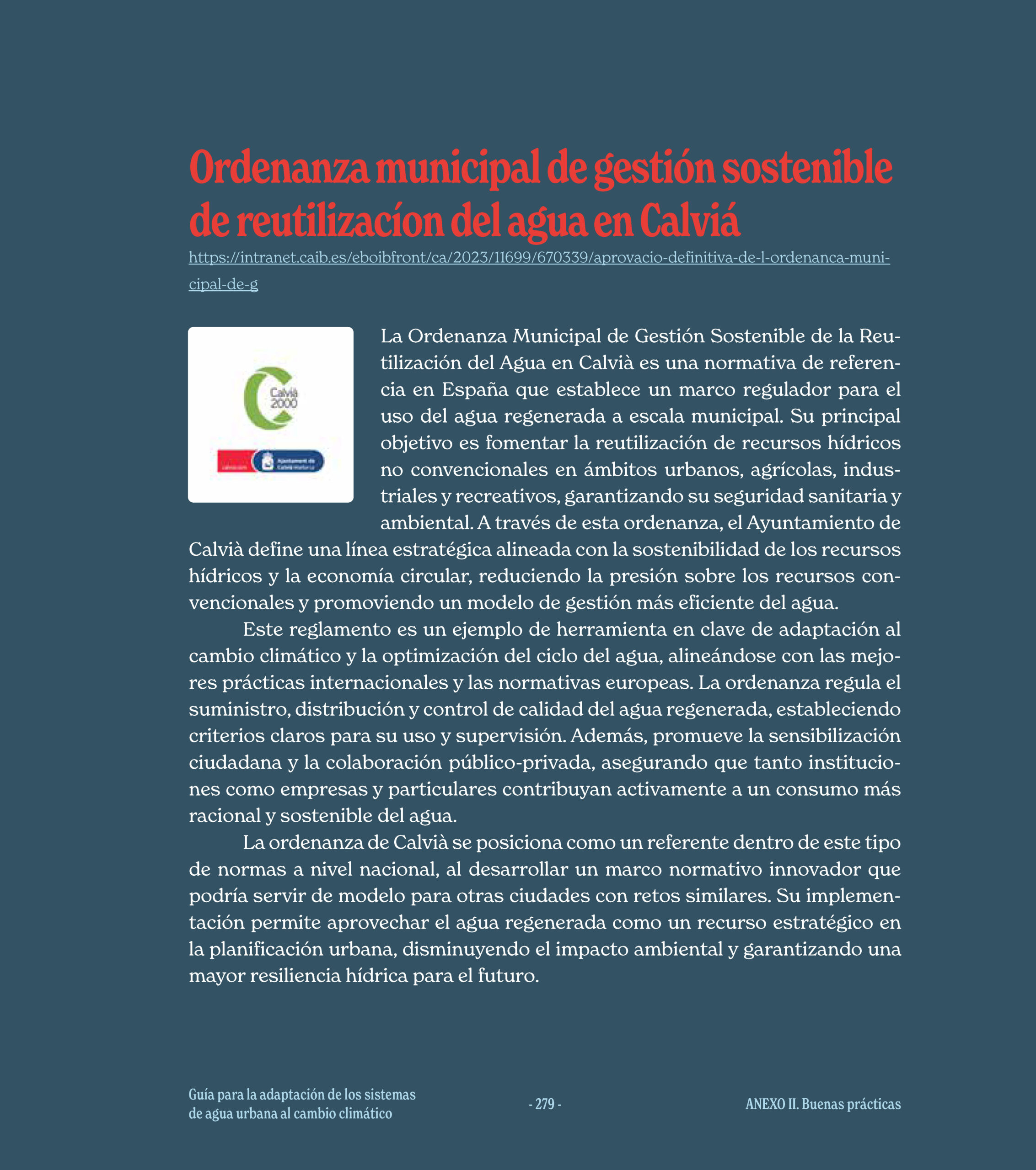 - Ordenanza municipal de gestión sostenible de reutilizacíon del agua en Calviá.