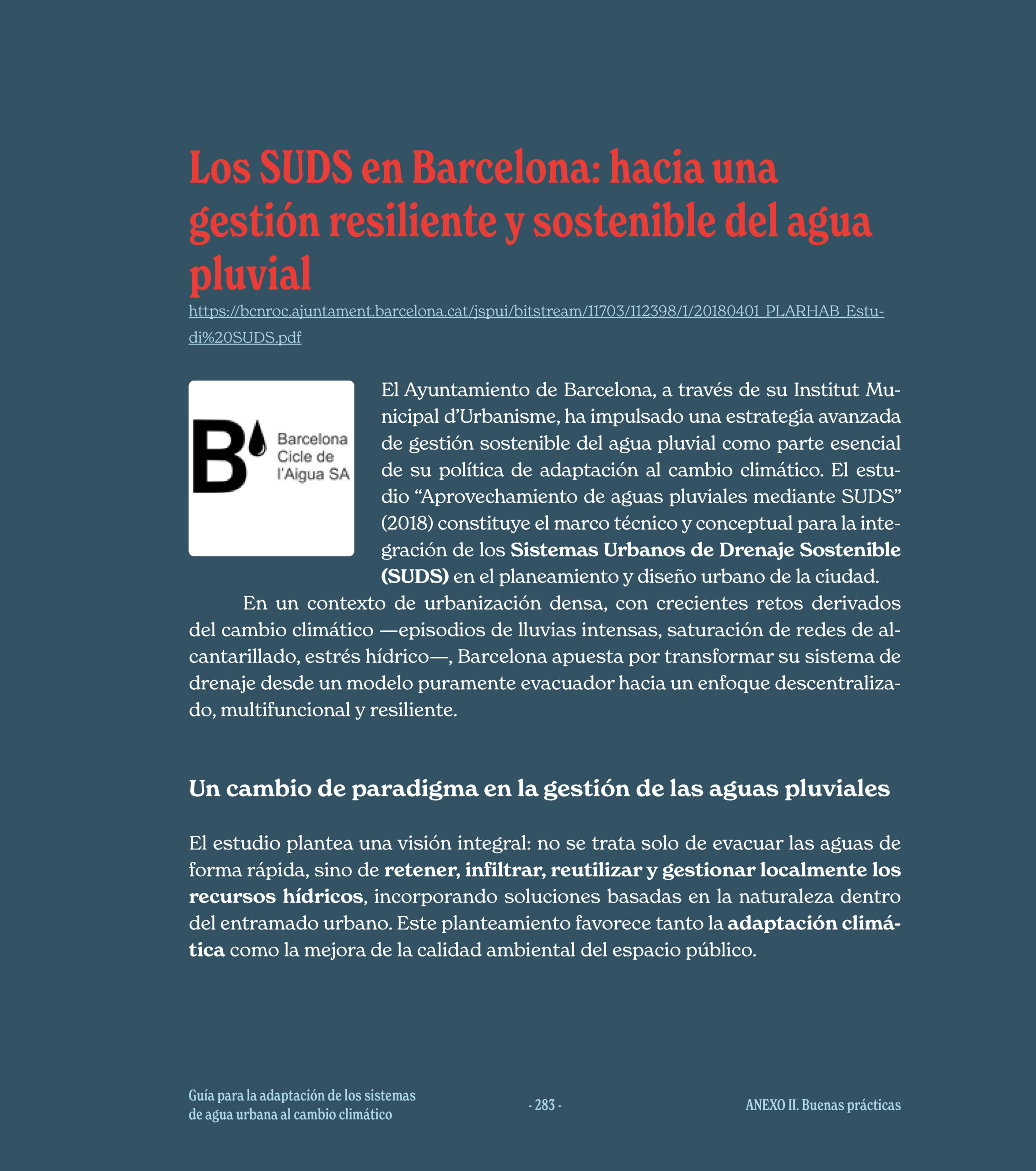 - Los SUDS en Barcelona: hacia una gestión resiliente y sostenible del agua pluvial.